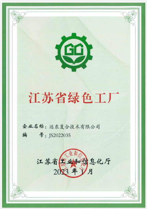 依据工业和信息化部工信厅节函2016-586号《绿色工厂评价要求》和GB/T 36132-2018《绿色工厂评价通则》,远东复合技术有限公司入围2022年江苏省绿色工厂。