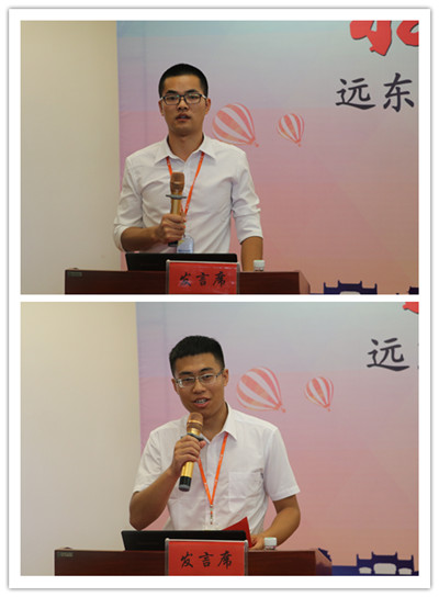 接力100第一期品牌宣传类研究生刘艳梅和技术类研究生蒋浪天作为学员代表分享了各自在轮岗一年内的学习心得与成长感悟。对于接力100第一期的学员来说,这是一个毕业仪式,接下来他们会逐步走到不同的条线,走上不同的岗位,开始新的征程。接力100第二期研究生李玉可,本科营销班苑岩峰作为代表发言。对于第二期的学员来说,此刻他们开始不再是“同学”,而是远东人,他们开始肩负公司赋予的责任,也肩负自己对未来的憧憬。