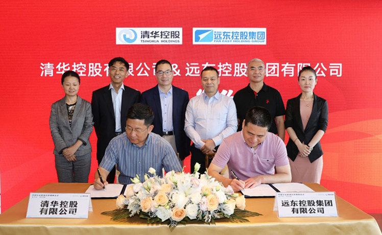 7月28日,清华控股有限公司与远东控股集团有限公司战略合作签约仪式在北京清华科技园举行。清华控股董事长徐井宏和远东控股集团创始人、董事局主席、党委书记蒋锡培作为双方代表签字。投资人、集团董事、远东智慧能源股份有限公司(简称:智慧能源,股票代码:600869)副董事长兼首席执行官蒋华君,智慧能源董事、首席运营官陈静,投资人、集团监事局副主席、首席行政官许国强,清华控股副总裁李中祥和郑允,总裁助理、战略总监张红敏作为助签嘉宾参与签约仪式。