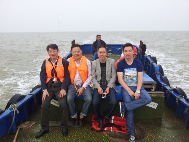 设备动力部总监郑思军(右一)为金风科技海上风电项目提供技术服务