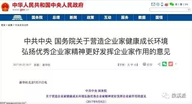 这个文件的题目,包括文件发出的机构就让人很振奋。比如说中共中央国务院发的,然后题目又非常旗帜鲜明地要“营造企业家健康成长的环境,弘扬优秀企业家精神”,所以大家总的感受是特别的温心。