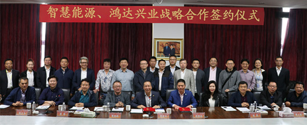 在座谈的最后蒋锡培和周奕丰分别代表智慧能源与鸿达兴业签订了战略合作框架协议。