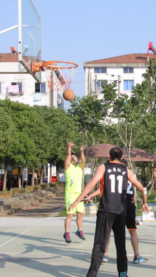下半场开始后,两队都加快了进攻节奏,内线激烈争抢,外线紧逼防守,双方你来我往,互不相让,将比赛推向高潮。最终双方以56:50结束了比赛,桃园社区队在此次友谊赛中获胜,结束后双方球队相互致意。