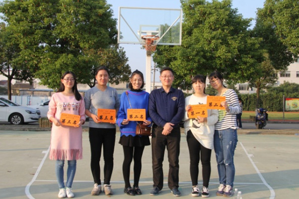 女子定点投篮颁奖:一等奖周洁,二等奖张绵绵、沈微,三等奖王艳洁、王凤勤、王娟