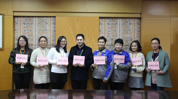 部分接受嘉奖员工(从左到右依次为:马雨璠、刘燕、刘萍、华清、孔涛、邹鹏飞、周胜男、唐静)