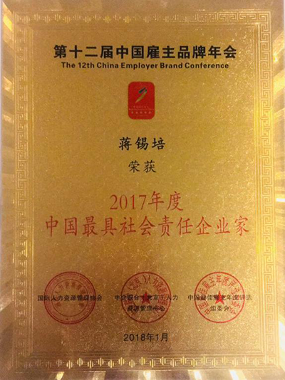 远东控股集团注重员工培训,尊重人才,凭借33年来在人力资源管理创新、企业文化建设等方面取得的重大成就,被组委会授予“2017年度中国最佳雇主企业”荣誉称号;远东控股集团创始人、董事局主席、党委书记蒋锡培荣获“2017年度中国最具社会责任企业家”荣誉称号;远东控股集团党委委员、首席人力资源官周东佼荣获“中国杰出经理人”荣誉称号。