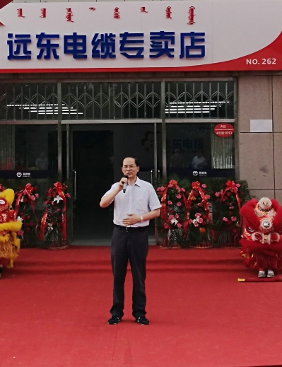 马月琴代表集团董事、智慧能源董事长蒋承志祝贺远东电缆鄂尔多斯专卖店的开业。她指出,远东秉持“诚信务实、创新创优、和灵共赢”的核心价值观,是荣获电线电缆行业 “全国质量奖”的企业,位列“中国企业500强”。专卖店是远东智慧能源的“形象窗口、业务窗口、物流窗口、服务窗口”,在公司正确领导与业界各位朋友的大力支持下,经过专卖店各位同事自身努力拼搏,远东电缆鄂尔多斯专卖店一定会取得丰硕成果。