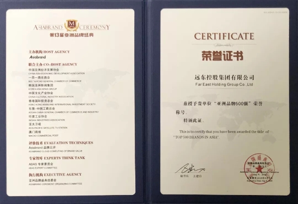 远东控股集团历来重视品牌建设,以过硬的产品质量树立品牌,将自身打造和发展成为行业内的龙头企业,并积极响应国家“一带一路”战略的号召,加强海外布局、提升国际化水平,乘着“一带一路”的东风,加快在沿线国家和区域的业务布局与业务发展,以产品输出扩大品牌效应,以全要素输出提升品牌价值,以平台输出深化品牌内涵,打出涵盖产品、技术、服务、平台的组合拳,服务更多国家和地区,系统化打造世界一流品牌。
