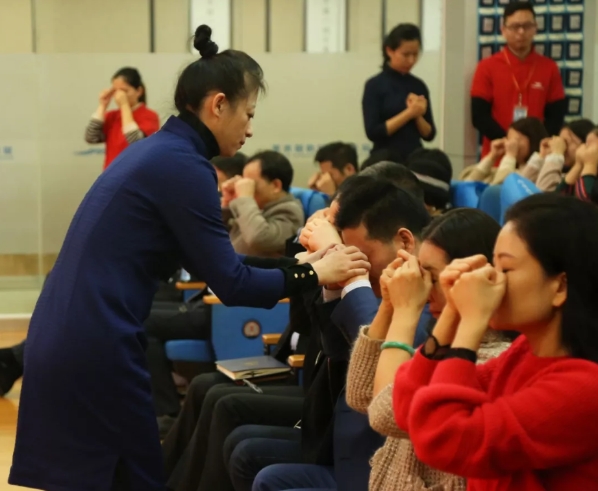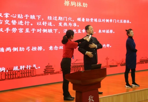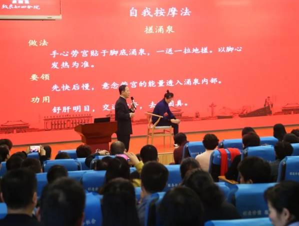 杜冰院长现场为各位学员讲解经络养生的实际运用及自我按摩手法
