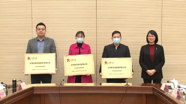 会上,高亚光为无锡市2021年获得国家级专精特新“小巨人”企业授牌,徐静代表远东股份旗下子公司远东复合技术有限公司上台领奖。