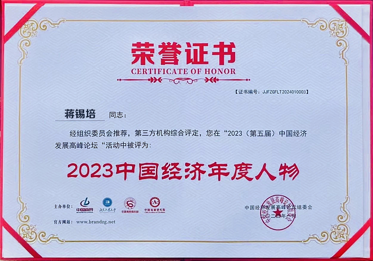1月21日,2023(第五届)中国经济发展高峰论坛暨中国经济影响力人物年会在北京举行。大会期间举行了2023中国经济年度人物及企业评选表彰活动,经各专业媒体、权威机构和行业主管部门推荐,组委会严格审核,远东控股集团创始人、董事局主席蒋锡培当选2023中国经济年度人物。