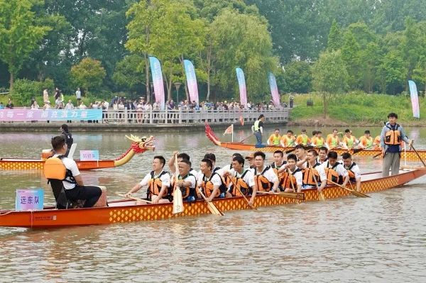 本次比赛采用18人制龙舟、400米直道竞速项目,来自远东控股集团、中建材(宜兴)新能源两家企业组成参赛队伍两两对决,争夺冠军。