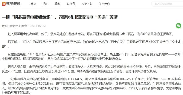 对此,新华日报聚焦远东新质生产力、助力绿色用电进行了深入报道。