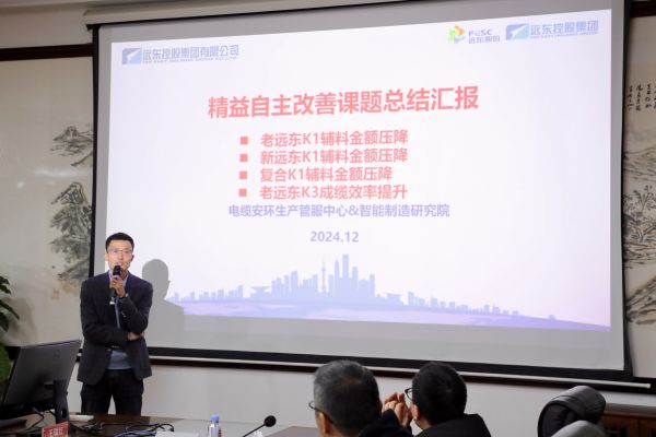 会议期间,远东股份精益开发高级主任工程师王瑞红做精益方法汇报,远东股份高级合伙人、高端电缆厂厂长助理韦祥龙,海洋电缆厂厂长助理余达,远东股份合伙人、智能电缆厂厂长助理余宗鹤,远东股份合伙人、特种电缆厂生产副班长拓伟分别就各自团队课题进行总结汇报。