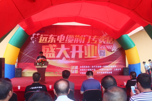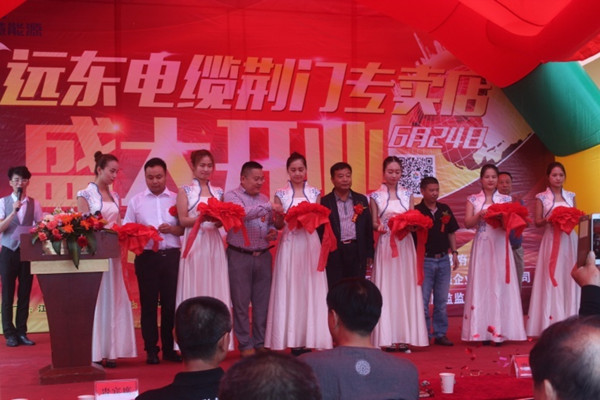 6月24日,在彩旗飘扬、拱门林立、鞭炮齐鸣的热烈气氛中,远东电缆荆门专卖店(地址:湖北荆门市东宝区杨家桥—马光彩大市场机电城24栋127,129号)正式开业。
