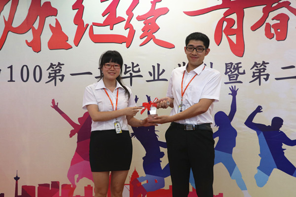接力100第一期品牌宣传类研究生刘艳梅和技术类研究生蒋浪天作为学员代表分享了各自在轮岗一年内的学习心得与成长感悟。对于接力100第一期的学员来说,这是一个毕业仪式,接下来他们会逐步走到不同的条线,走上不同的岗位,开始新的征程。接力100第二期研究生李玉可,本科营销班苑岩峰作为代表发言。对于第二期的学员来说,此刻他们开始不再是“同学”,而是远东人,他们开始肩负公司赋予的责任,也肩负自己对未来的憧憬。