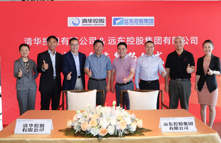 7月28日,清华控股有限公司与远东控股集团有限公司战略合作签约仪式在北京清华科技园举行。清华控股董事长徐井宏和远东控股集团创始人、董事局主席、党委书记蒋锡培作为双方代表签字。投资人、集团董事、远东智慧能源股份有限公司(简称:智慧能源,股票代码:600869)副董事长兼首席执行官蒋华君,智慧能源董事、首席运营官陈静,投资人、集团监事局副主席、首席行政官许国强,清华控股副总裁李中祥和郑允,总裁助理、战略总监张红敏作为助签嘉宾参与签约仪式。
