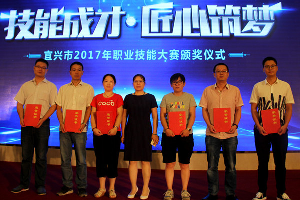 宜兴市职业技能大赛冠军颁奖仪式於文辉(右四)、周陈云(右二)